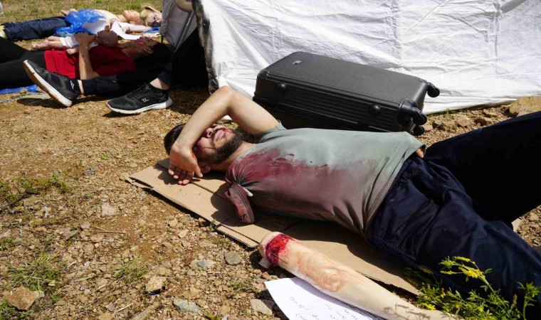 Tatbikatın gerçekçiliğini arttırabilmek için öğrenciler 3 saat süren bir hazırlığın ardından makyajla yaralı hale getirilirken, senaryo gereği düşen uçakta bulanan yaralı öğrenciler çığlıklar atarak yardım istedi. Bölgeye gelen üniversite öğrencileri de arkadaşlarına ilk yardımda bulunarak daha sonra sedyelerle bölgeden uzaklaştırdı.