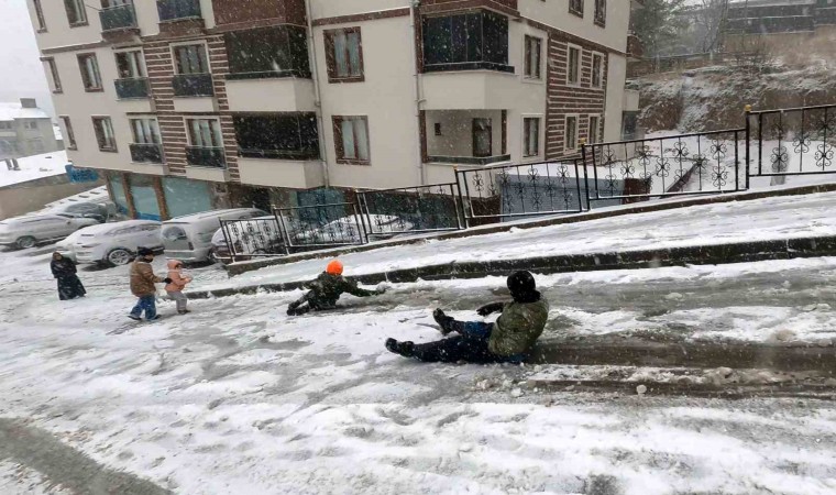 Yüksek kesimlerde kar kalınlığı 10 santimetreyi aşarken kent merkezinde yollarda ve dik rampalarda tutan kar yağışına en çok çocuklar sevindi. Eline poşeti alan çocukların birçoğu rampa yollarda kayarak doyasıya eğlenirken kartopu oynamayı da ihmal etmedi.