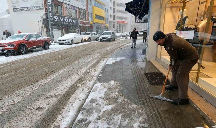 Yağışın ardından kent merkezinde karlı yollarda temizlik ve tuzlama çalışmaları da başladı.