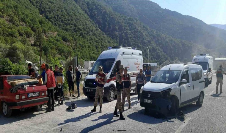 Gümüşhane’de sağ şeritten kavşağa girmeye çalışan otomobil ile aynı istikamette sol şeridi kullanan başka bir otomobil çarpıştı. Kazada 3 kişi yaralandı.