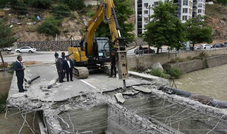 Ülkenin bir kısmının sel felaketleriyle boğuştuğu bugünlerde Gümüşhane’de Belediye Başkanlığı, Harşit Çayı üzerinde sel ve taşkın riski oluşturan köprünün yıkımına başladı.