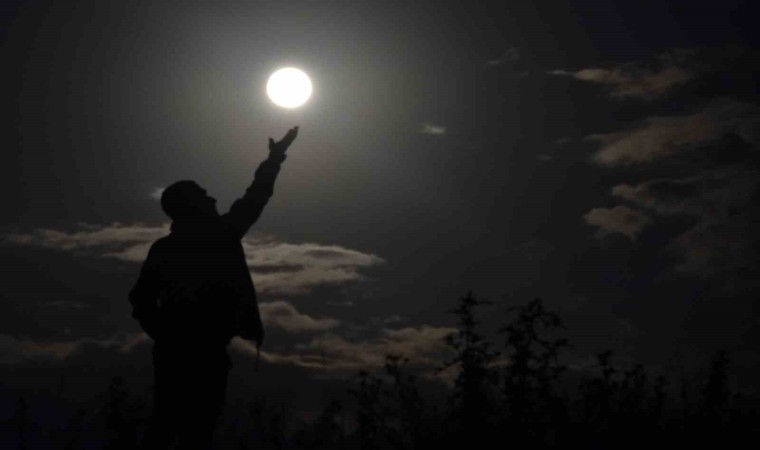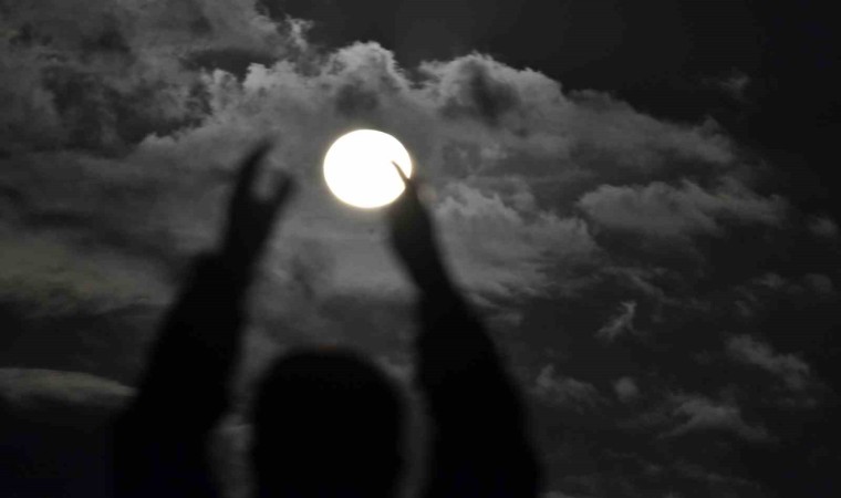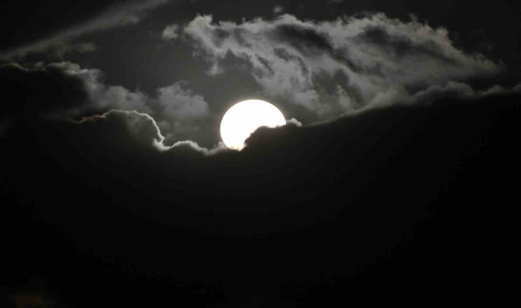 Bulutların arasından süzülen Süper Ay’ın güçlü hüzmeleri çıplak gözle dahi görülürken, o sırada bulutların oluşturduğu dua eden çocuk figürü dikkat çekti.