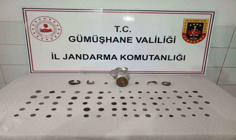 Kelkit İlçesinde iki şahsın tarihi eser niteliğinde sikke bulundurduğu bilgisi alan ekipler Cumhuriyet Savcılığından alınan arama kararına istinaden Kelkit ilçesine bağlı Söğütlü Beldesinde durdurdukları araçta yapılan aramada 273 adet tarihi eser niteliğinde sikke olduğu değerlendirilen madeni para, 1 adet mezar taşı, 8 adet yüzük, 4 adet boyunluk haç, 4 adet kolye, 1 adet madalyon, 1 adet mızrak ucu, 1 adet gözyaşı şişesi ve 1 adet mühür ele geçirdi.