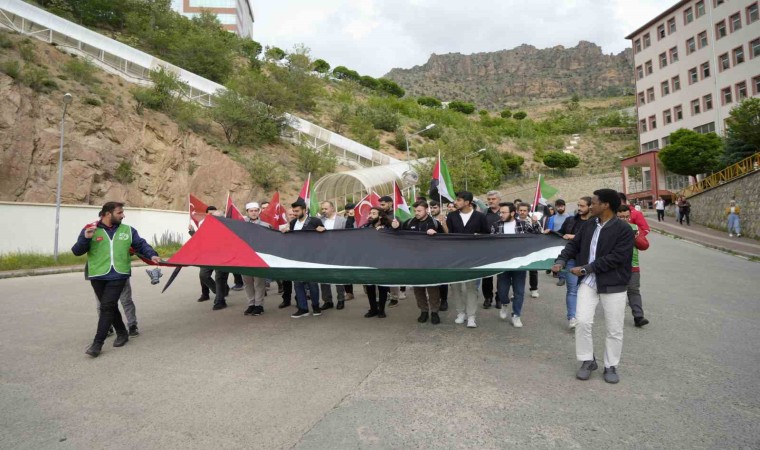 Sivil toplum kuruluşu temsilcileri, öğrenciler ve akademisyenlerin katıldığı yürüyüş Gümüşhane Üniversitesi’nde Mühendislik ve Doğa Bilimleri Fakültesi önünden başladı. Yürüyüş güzergahı boyunca Filistin bayrağı taşıyarak sloganlar atan kalabalık Gümüşhane Üniversitesi Sosyal Tesisleri önünde basın açıklaması gerçekleştirdi. Basın açıklamasında İsrail’in, Refah kentinde yerinden edilen Filistinlilerin kampına düzenlediği saldırıya tepki gösterildi.