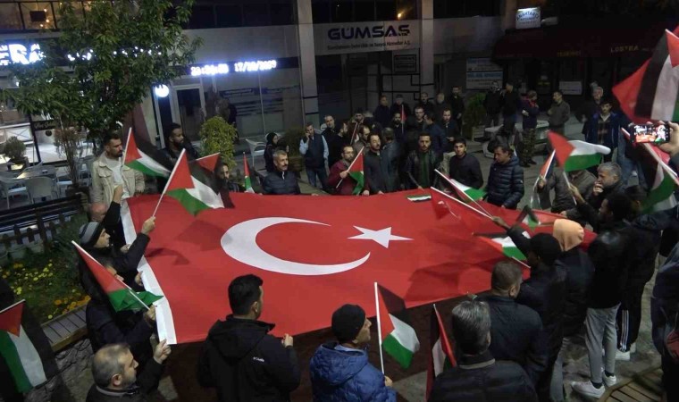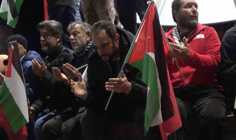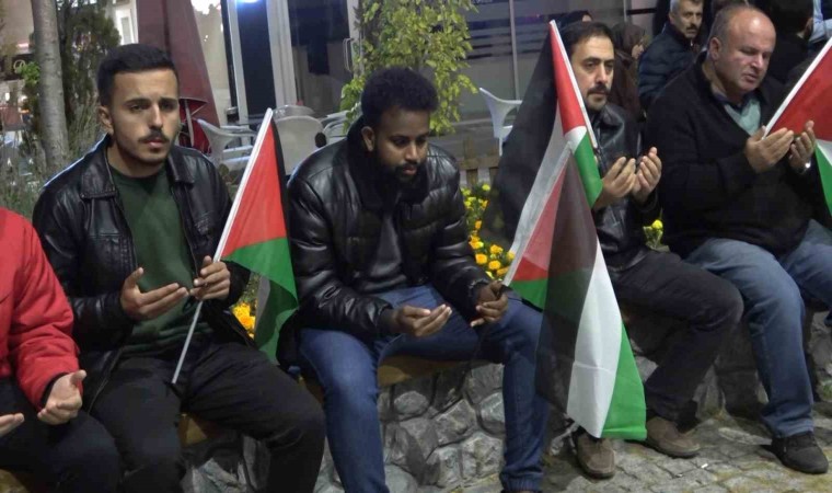 Gazze’deki El-Ehli Baptist Hastanesi’ne düzenlenen saldırının ardından Gümüşhane’de İsrail’i protesto eden vatandaşlar, Filistin için dualar etti.