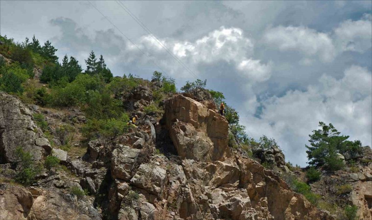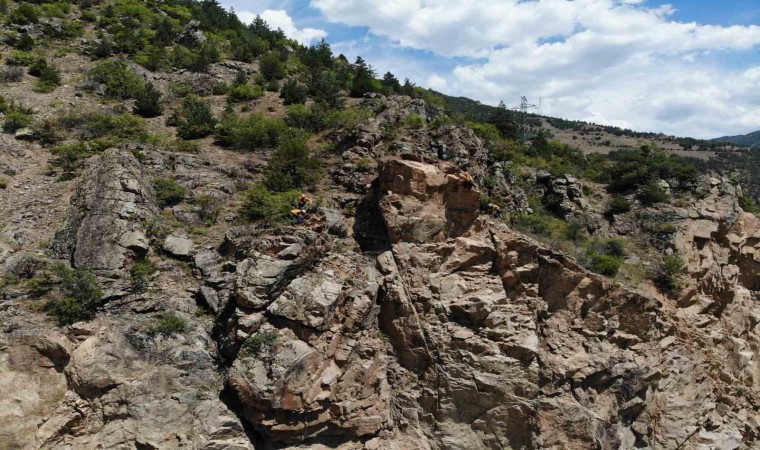 Gümüşhane-Giresun karayolunun Kürtün geçişinde dağ yamaçlarında kopmaya hazır vaziyette bekleyen ve adeta felakete davetiye çıkaran kayalar Karayolları ekipleri ve dağcılar tarafından temizleniyor.