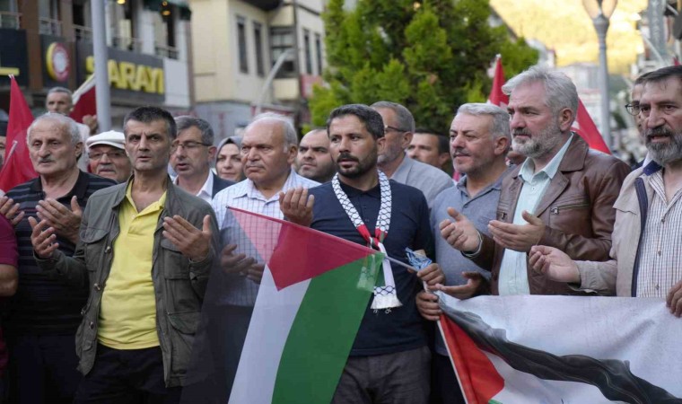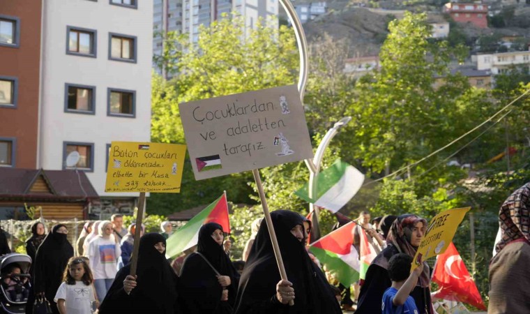 Gümüşhane’de sivil toplum kuruluşları tarafından organize edilen yürüyüşte 500’ü aşkın kişi, Hamas Siyasi Büro Şefi İsmail Haniye’nin öldürülmesini protesto etmek ve Filistin’e destek vermek için yürüdü.
