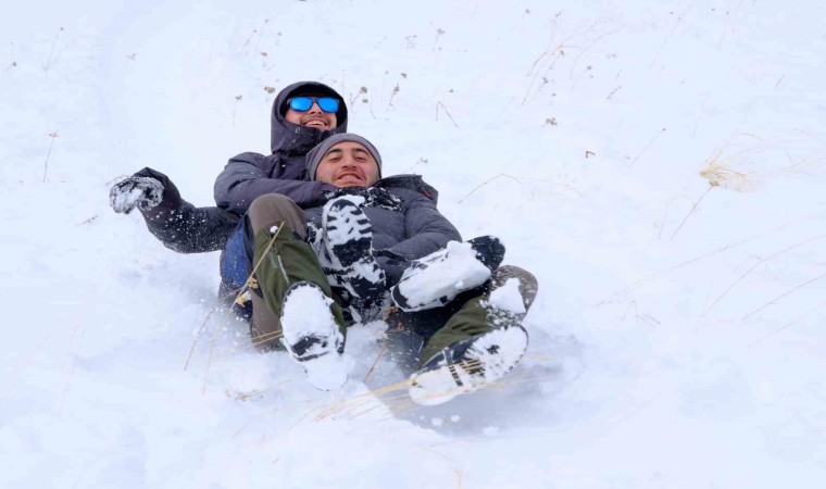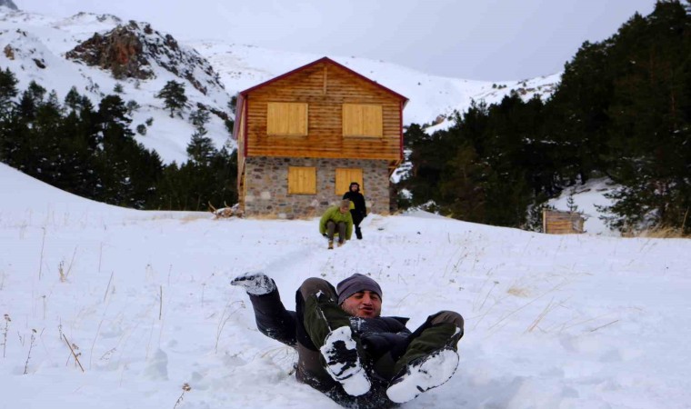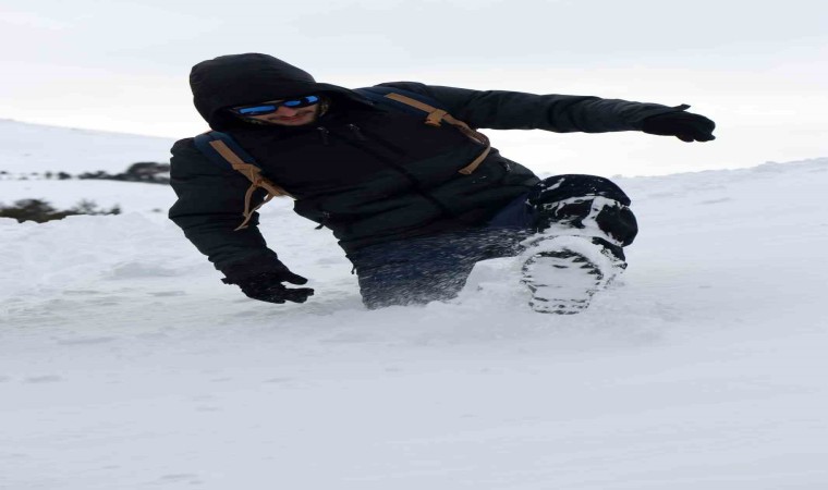 Etkinliğe katılan 19 sporcu soğuk hava nedeniyle buz tutan derelerin yanından 2 bin 50 metre rakımdaki yaylaya ulaşıp burada yemek yiyip bir süre dindikten sonra çocukluklarına geri dönerek yanlarında getirdikleri poşetlerin üzerinde kayarak eğlendi.