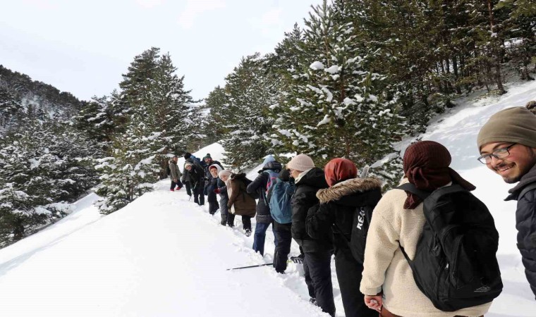 Yaklaşık 6 kilogramlık kayak takımını omuzunda taşıyarak yaylaya ulaşan Burak Soydaş, “Bugünkü yürüyüşümüzde 2 bin metrenin üzerine kadar çıktık. Güzel bir kış yürüyüşü oldu. Yol boyunca yer yer 70 santimetreye ulaşan kar kalınlığı yaylada bir metreyi geçti. Kar olacağını bildiğim için ilk defa kayak takımımı da yanımda getirdim. Omuzumda taşıdığım kayaklarımla ulaştığım yayladan sonra güzel bir iniş yaptım. Manzara çok güzeldi. Ağaçlar kar yağışı nedeniyle beyaza bürünmüştü. Dereler buz tutmuştu. Bunlar çok güzel görüntüler oluşturdu. Hem güzel manzaraları izledik hem spor yaptık hem de kayak zevkini de tatmış olduk” dedi.
