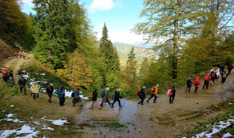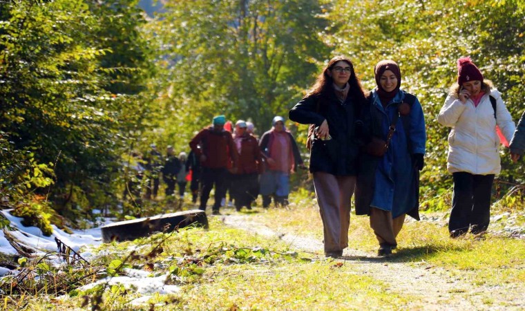 Sonbahar ve kışın iç içe geçtiği benzersiz bir atmosfere tanıklık eden sporcular doğanın en güzel renklerini karlı manzarayla birleştiren bir yürüyüş gerçekleştirerek unutulmaz anlar yaşadı.