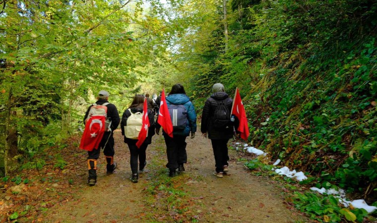 Gümüşhane Dağcılık, Doğa Sporları ve Gençlik Derneği (GÜDAK) üyesi 43 sporcu Cumhuriyetin ilanının 101. yılı için kentin canlı ağaç müzesi olan yüzlerce yıllık ağaçlara ev sahipliği yapan Örümcek Ormanları’nda buluştu. Sporcular Türk bayraklarıyla eşsiz sonbahar manzarası ve karla kaplı zirvelerin gölgesinde 14 kilometrelik parkuru kat etti.