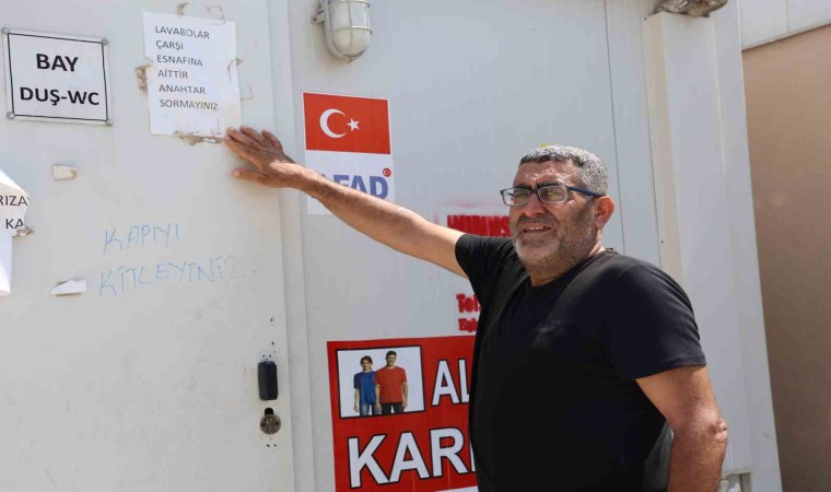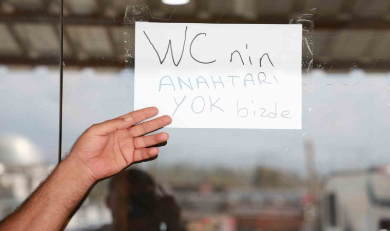Antakya ilçesinde yaşayan Hasan Tokses, asrın felaketi sonrası Hatay Valiliği tarafından kurulan prefabrik çarşıda çerez ürünleri satışı yapan iş yeri kurarak hayata yeniden başladı. Tokses’in iş yerinin yanı başındaysa esnafın ortak olarak kullandığı tuvalet bulunuyor. Prefabrik çarşıya gelen vatandaşların tuvalet ihtiyacında aklına ilk gelense kilitli kapının anahtarını tuvaletin yanı başında iş yeri bulunan Tokses’den istemek oluyor. Tokses, kendisine günde defalarca sorulan ‘Tuvaletin anahtarı var mı?’ sorusuna iş yerinin camına astığı ‘WC’nin anahtarı bizde yok’ yazısıyla çözüm buldu. Astığı afişle sorunu kısmen çözmüş olan Tokses, halen anahtarı kendisine soranlar olduğunu ifade etti.