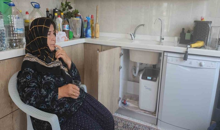 Hatay’da yaşayan ve günde 25 litre su tüketen Necla Bilgi, evine takılan arıtma cihazıyla sağlıklı su tüketmeye başladı.