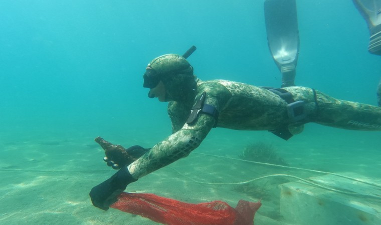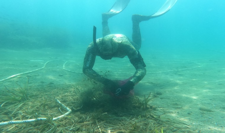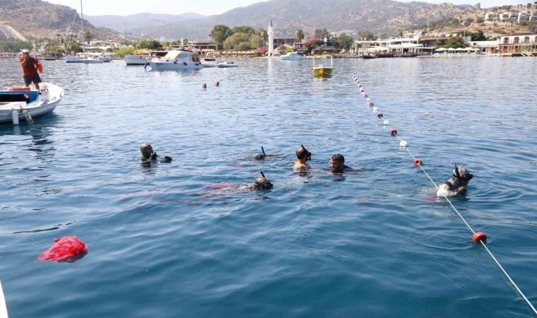 Bodrum Belediyesi tarafından düzenlenen deniz dibi temizliğinin dokuzuncu etabı Gündoğan koyunda yapıldı.