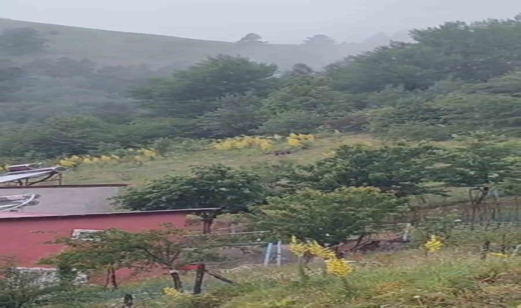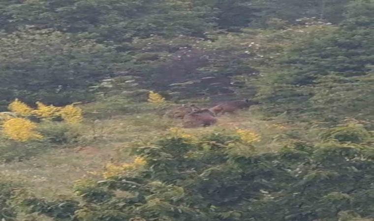 İlçeye bağlı Cebeli köyünde yaşayan vatandaşlar önceki gün gündüz saatlerinde yağmur yağarken gelen sesleri merak edip çıktıklarında evlerinden 15-20 metre yukarıda 3 ayının otladığını fark etti.