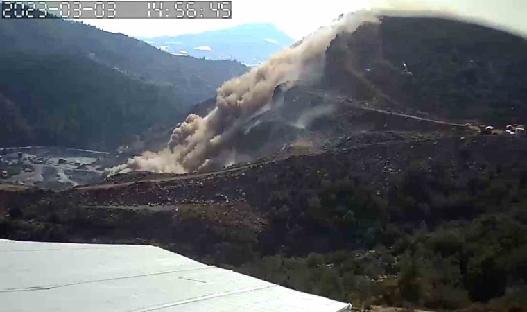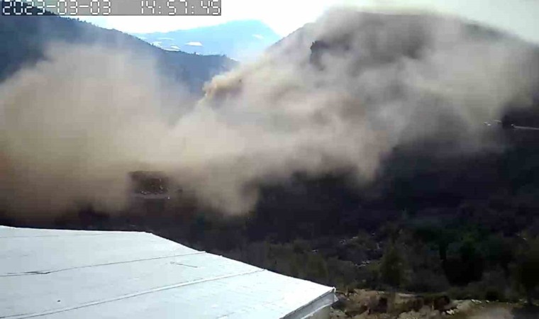 Öte yandan bölgedeki dinamitle patlama anları güvenlik kamerası ile bölge sakininin cep telefonu kamerasına saniye saniye yansıdı. Görünütlerde patlama sonrası büyük bir toz bulutunun oluşup görüntülerin kaydedildiği alana doğru ilerlediği gözlendi.