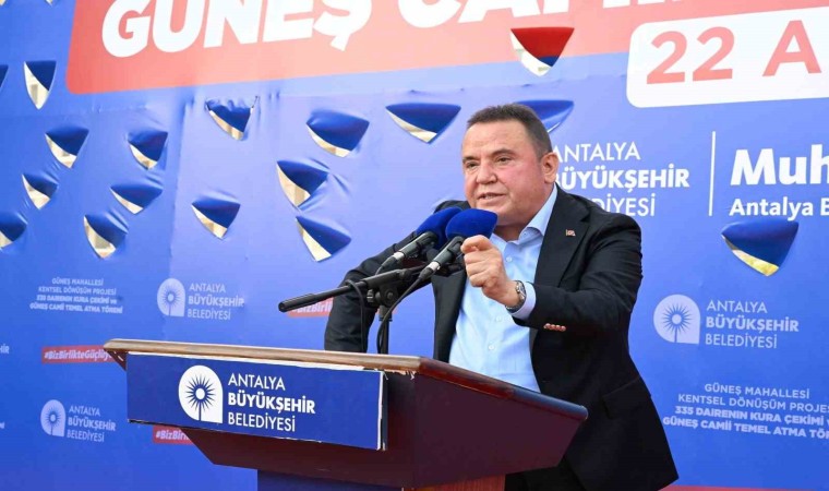Törende ayrıca Antalya Büyükşehir Belediyesi tarafından Güneş Mahallesi’ne kazandırılacak caminin temel atması da gerçekleştirildi. Mahallede bulunan 2 bin 152 metrekare alan üzerinde yaklaşık bin metrekare toplam inşaat alanına sahip olan cami projesinin zemin katında morg, gasilhane, kadın-erkek WC, abdesthane, elektrik odası, taziye salonu yer alıyor. Birinci katında son cemaat yeri, imam odası, harim bulunuyor. İkinci katta ise bayan mahfili fonksiyonlarına yer verildi. 940 metrekare yeşil alana, 615 metrekare sert zemine, şadırvana, iki minare ve çevre duvarlarına sahip olacak cami; harim bölümünde 508 kişi, son cemaat yerinde 117 kişi, bayan mahfili bölümünde 200 kişilik olmak üzere toplam 825 kişi kapasiteli olacak.