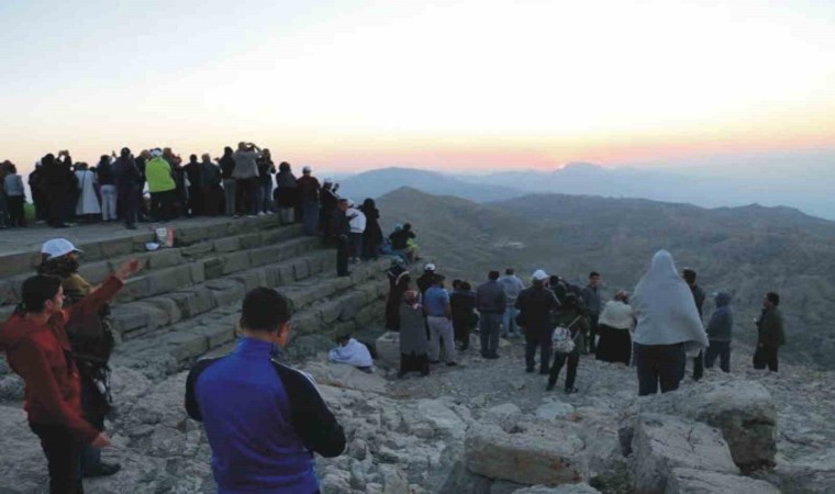 2 Bin 206 metre rakımda inşa edilen piramit şeklindeki 50 metre yükseklikte ve 150 metre çapındaki Kral Antiochos Teos’un anıt mezarı ve etrafını süsleyen dev mitolojik tanrı heykelleri; her yıl yüz binlerce insanın ziyaret ettiği yer olmaya devam ediyor. Güneşin doğuşu ve batışının gizemine hayran kalan ziyaretçiler, Nemrut Dağı’nda meditasyon yapmaya başladı.