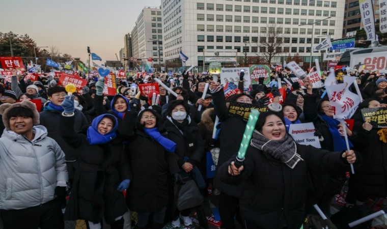 Güney Kore Devlet Başkanı Yoon Suk Yeol tarafından 3 Aralık’ta ilan edilen ve 6 saatin ardından Ulusal Meclis’te alınan karar sonucu yürürlükten kaldırılan sıkıyönetimin yol açtığı siyasi deprem sürüyor. Güney Kore Ulusal Meclisi, muhalefetin Yoon’un görevden alınması talebiyle sunduğu 2’nci azil önergesini oylamak üzere toplandı. Muhalefet bloğunun 300 sandalyenin 192’sine sahip olduğu mecliste yapılan oylamada, azil önergesi 85’e karşı 204 oyla kabul edildi. 3 milletvekilinin çekimser oy kullandığı oylamada, 8 oy ise geçersiz sayıldı. Önergenin kabulü için sayıları meclisin 3’te 2’lik çoğunluğuna tekabül eden 200 milletvekilinin oyu gerekiyordu. Bunun için de Yoon’un mensubu olduğu Halkın Gücü Partisi’nden (PPP) en az 8 milletvekilinin azil önergesine destek vermesi gerekiyordu.
