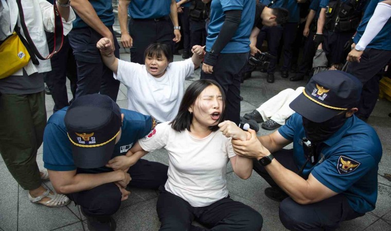 Güney Kore’de Japonya’nın Fukuşima Daiichi Nükleer Santrali’nde biriken arıtılmış radyoaktif atık suyu denize boşaltmasını protesto etmek isteyen üniversite öğrencileri, Japonya’nın Seul Büyükelçiliği’ne girmeye çalıştı. Olayda 16 öğrenci gözaltına alındı.