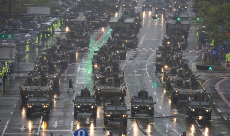 Güney Kore 10 yıl ardından ilk kez Seul’de Silahlı Kuvvetler Günü kapsamında askeri geçit töreni düzenleyerek Kuzey Kore’ye gözdağı verdi. Ülkenin son askeri teknolojilerinin sergilendiği törende 3 bin 700 asker yer aldı. Törene ilk kez ABD askeri de katıldı.