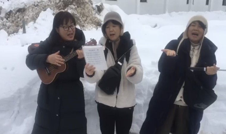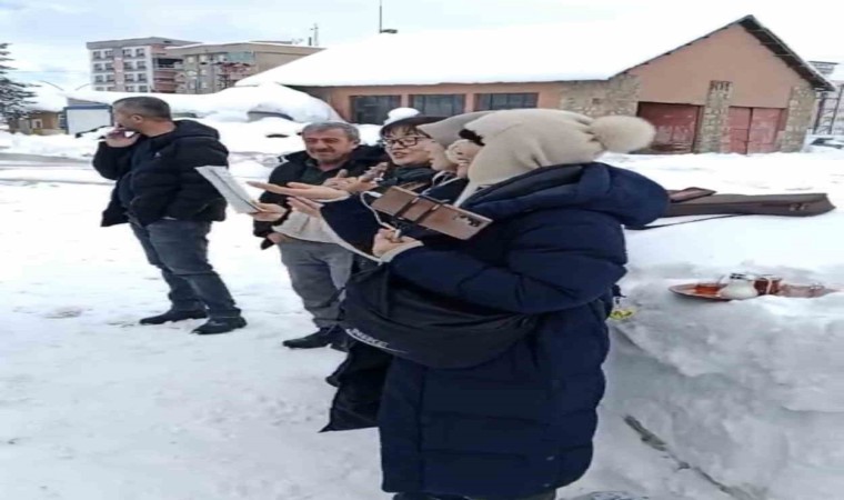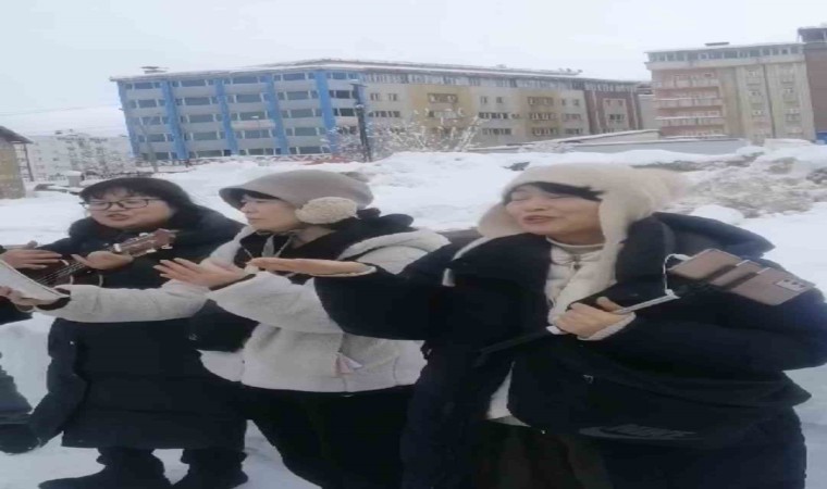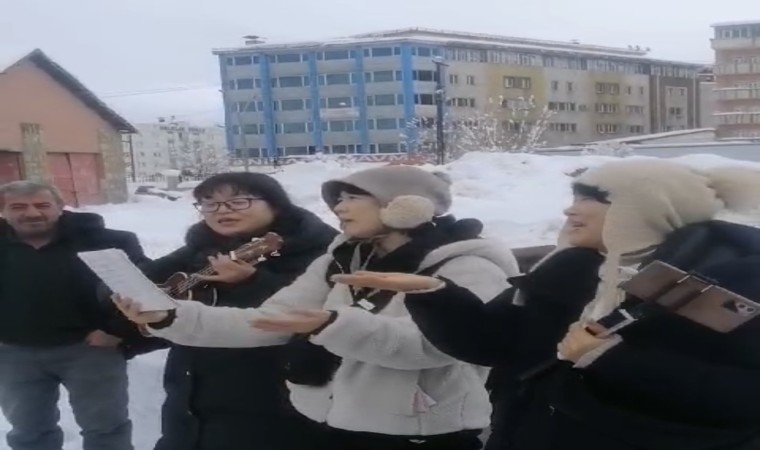 Hakkari’nin Yüksekova ilçesini ziyaret eden Güney Koreli turistler, yollarda kar temizleme çalışması öncesi Karayolları ekiplerine yöresel şarkılarını seslendirdi.
