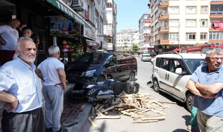 Ortalığın savaş alanında döndüğü ve çok sayıda aracın karıştığı zincirleme trafik kazası anı bir iş yerinin güvenlik kamerasına yansıdı. Görüntülerde sürücüsünün direksiyon hakimiyetini kaybettiği hafif ticari aracın ilk önce yol kenarında park halindeki motosiklete daha sonra da kaldırıma çıkarak bir iş yerine çarparak durduğu görülüyor.