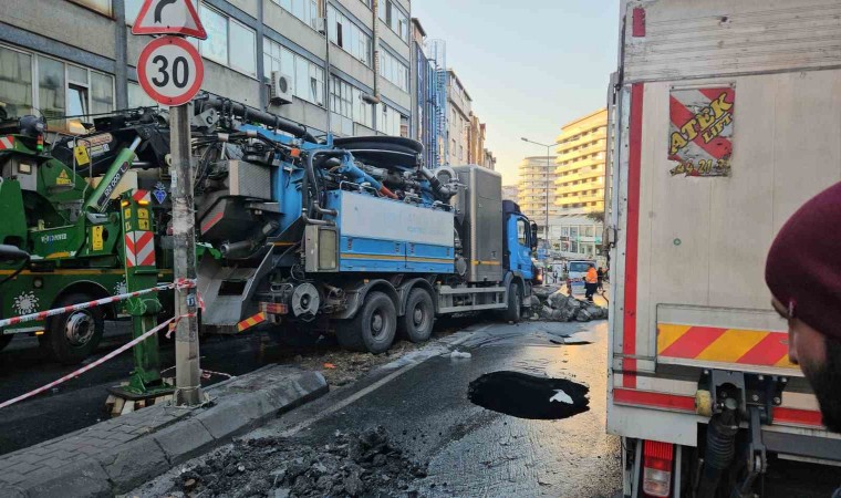 İstanbul Güngören’de İstanbul Büyükşehir Belediyesi Su ve Kanalizasyon İdaresi (İSKİ) ekiplerinin cadde üzerinde yaptığı çalışma esnasında çöken yola düşen 2 kamyon kurtarıldı.