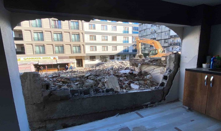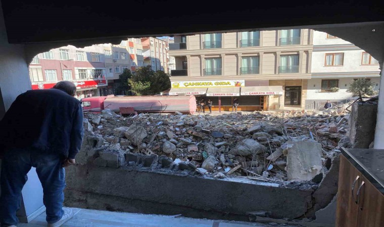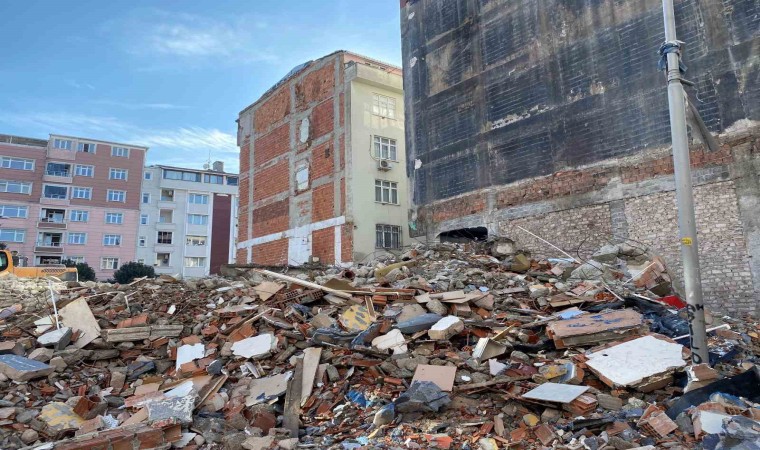 Güngören’de bina yıkımı esnasında yanındaki 2 binanın duvarında hasar oluştu. Binalarda bulunan 1 daire ve iş yerinin içi molozlarla kaplandı.