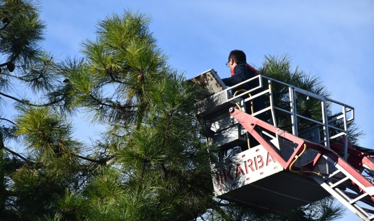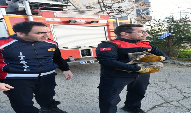 Alaplı ilçesi Yeni Siteler Mahallesinde 3 gündür ağaçta mahsur kalan kedi için itfaiye ekipleri seferber oldu. İhbarı üzerine bölgeye giden Alaplı Belediyesi itfaiye ekipleri yaklaşık 20 metre uzunluğundaki çam ağacına merdiven yardımla ulaşarak kediyi kurtarmaya çalıştı. 30 dakika süren kurtarma çalışmalarının ardından ekipler kediyi ağaçtan kurtardı.