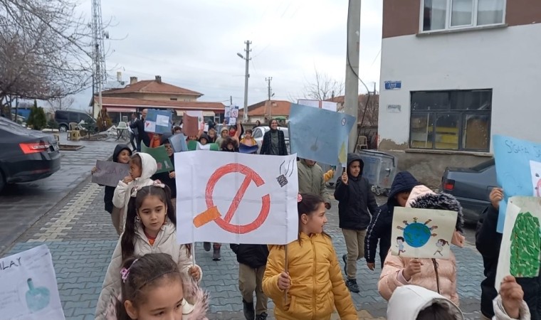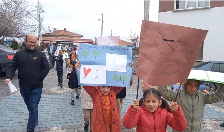 Günyüzü’nde Yeşilay haftası sebebi ile bir araya gelen minikler, kötü alışkanlıklara dikkat çekmek için ilçe merkezinde yürüyüş yaptı.