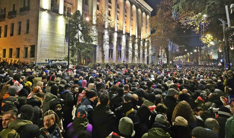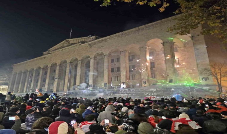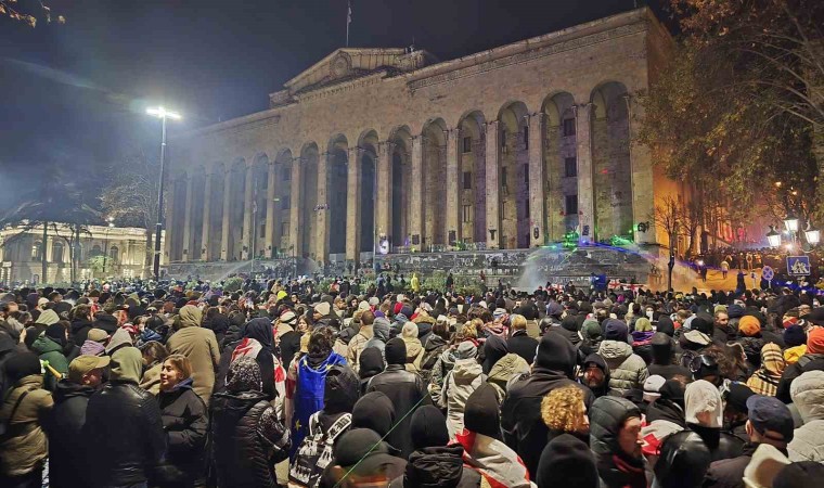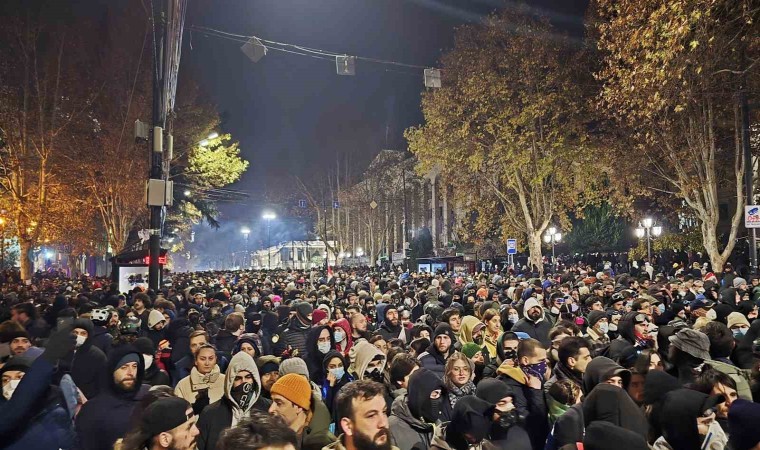 Gürcistan’da Başbakan İrakli Kobakhidze hükümetinin AB’ye katılım müzakerelerini 2028’e kadar durdurma kararına karşı düzenlenen protestolar 6. gününde devam etti. Başkent Tiflis’in Şota Rustaveli Caddesi’ndeki parlamento önünde yerel saatle 20.00’de başlayan protestoda göstericilerin havai fişek ve yabancı maddeler fırlatmasıyla bir kez daha tansiyon yükseldi. Polis, tazyikli su ile protestoculara müdahale etti. Parlamento binası önünden uzaklaştırılan protestocular, Cumhuriyet Meydanı’na geçti. Kısa süre sonra tekrar Şota Rustaveli Caddesi’ne dönen protestocular, barikat kurup polise havai fişek ve küçük taşlarla saldırdı. Polisin müdahalesine rağmen protesto sabaha kadar devam etti. Sabah saatlerinde İlya Çavçavadze Bulvarı, ardından Vaja Pşavale semtine geçen protestocular, hükümet aleyhinde "Ruslar", "Köleler", "Git, git" şeklinde sloganlar atarak protestoyu sonlandırdı. Gürcistan İçişleri Bakanlığı tarafından yapılan yazılı açıklamada, 22 göstericinin gözaltına alındığı belirtildi.