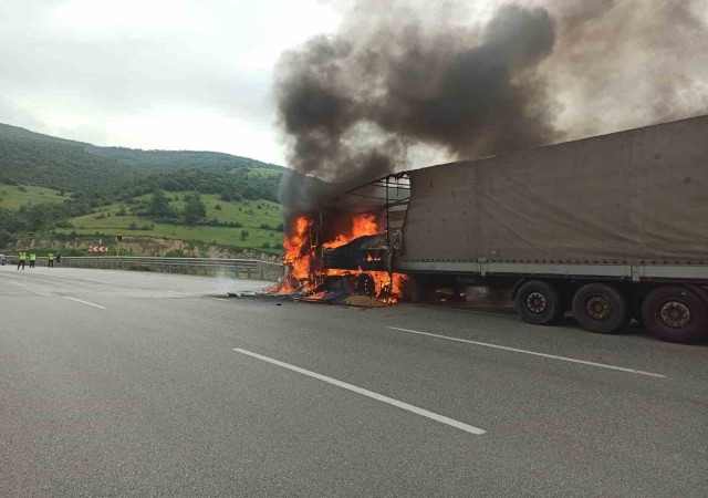 Gürcistana arpa taşıyan tır Samsunda alev alev yandı