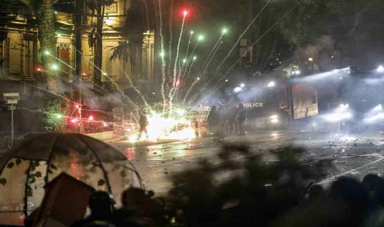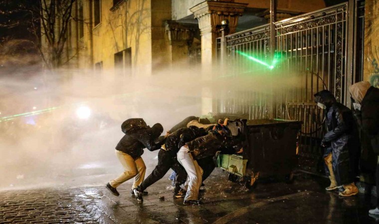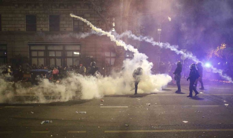Gürcistan’da Başbakan İrakli Kobakhidze hükümetinin AB’ye katılım müzakerelerini 2028 yılına kadar askıya alma kararına karşı düzenlenen protestolar ikinci günde devam etti. Başkent Tiflis’teki parlamento binası önünde toplanan protestocular, taş ve yabancı maddelerle demir barikatları hedef aldı. Protestocuların güvenlik güçlerine havai fişek ve yabancı madde atmasıyla tansiyon bir kez daha yükseldi. Polis, protestoculara tazyikli su ve göz yaşartıcı gazla müdahale etti.