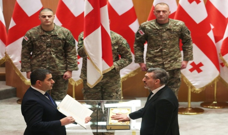 Gürcistan’da 14 Aralık’ta parlamentoda yapılan oylamada iktidardaki Gürcü Hayali Partisi’nin adayı, eski milli futbolcu Mikheil Kavelaşvili, 224 oyla cumhurbaşkanı seçilmişti. Gürcistan’da ilk kez halk oylaması yerine parlamento binasında 300 kişiden oluşan seçim kurulu tarafından yapılan seçimde cumhurbaşkanı olan Kavelaşvili bugün parlamentoda törenle yemin etti. Parlamento binası dışında gerçekleştirilen protestoların gölgesinde yemin ederek göreve başlayan Kavelaşvili ülkenin 6. Cumhurbaşkanı oldu. Yaklaşık 40 dakika süren törene, iktidardaki Gürcü Hayali Partisi’nin kurucusu Bidzina İvanişvili, Başbakan İrakli Kobakhidze, parlamento üyeleri, belediye temsilcileri, Acara ve Abhazya Yüksek Konseyi üyeleri, kabine üyeleri ve Yüksek Seçim Kurulu üyeleri katıldı. Ancak törene muhalefet partileri katılmadı.