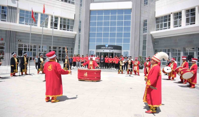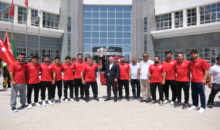 İkincilik kupası ile Çorum’a dönen güreşçiler Belediye Başkanı Dr. Halil İbrahim Aşgın’ı ziyaret etti. Güreşçiler için belediye binası önünde mehterli tören yapıldı.