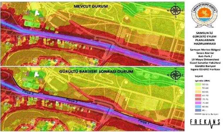 Sürekli Gürültü İzleme Sistemi kurulmasına yönelik çalışmalara başlandığının belirtildiği İl Mahalli Çevre Kurulu’nda Atakum ilçesi Adnan Menderes Bulvarı’nda konut ve eğlence yerlerinin bir arada olması nedeniyle yıl boyunca gürültü şikayetleri geldiği, yaz döneminde şikayetlerin artış gösterdiği ifade edildi. Çevresel Gürültü Kontrol Yönetmeliği gereğince Atakum, Canik, İlkadım, Bafra ve Çarşamba ilçelerini kapsayan Stratejik Gürültü Haritalarının Güncellenmesi Raporu hazırlandı. Hazırlanan rapor Çevre, Şehircilik ve İklim Değişikliği Bakanlığı tarafından 12 Ocak tarihinde onaylandı. Onaylanan rapora istinaden Gürültü Eylem Planları hazırlanıyor. Konu hakkında valilikten yapılan yazılı açıklamada, “Yapılan çalışmalar doğrultusunda gürültü yönünden tedbir alınması gereken noktalar belirlenmiş ve bu noktalardan bazılarında gürültü bariyeri yapılmasının uygun olacağı tespit edilmiştir. İlkadım ilçesinde bulunan Batıpark özellikle yaz aylarında bölge halkının gündüz-akşam zaman diliminde yoğun olarak kullandığı bir parktır ve Atatürk Bulvarı bölgedeki çizgisel gürültü kaynağıdır. OMÜ Güzel Sanatlar Fakültesi binaları Atatürk Bulvarı üzerinde ve Batıpark’ın yanında yer almakta olup karayolu gürültüsüne maruz kalmaktadır. Park giriş-çıkışları, ara yollar ve kampüs sınırı göz önünde bulundurularak 3 bölgede gürültü bariyeri çalışması gerçekleştirilmiştir. Model sonuçlarına göre gürültü azalımı etkinliği açısından 4 metre gürültü bariyeri uygulanması bölge için uygun bulunmuştur. Model sonuçlarına göre bariyer uygulaması yapılan bölgelerin karayoluna yakın bölümlerinde yaklaşık olarak 5-10 desibellik bir gürültü azalımı sağlanmıştır” ifadeleri kullanıldı.