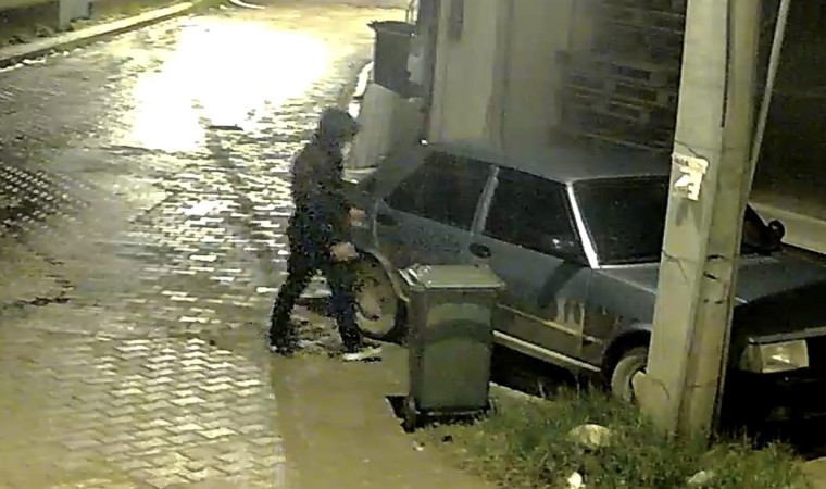 Olay, dün sabah 05.00 sıralarında İnegöl Cumhuriyet Mahallesinde meydana geldi. Sokağa yürüyerek giren şüpheli, park halindeki 16 ANH 999 plakalı aracın kapısını zorlayarak açtı. Araçtaki teyp ve malzemeleri alan şahıs, sokaktaki apartmanın girişine malzemeleri sakladı. 5 dakika sonra başka bir araçla olay yerine geldi. Geldiği apartmanın girişine sakladığı çaldığı malzemeleri araca koyarak kayıplara karıştı.