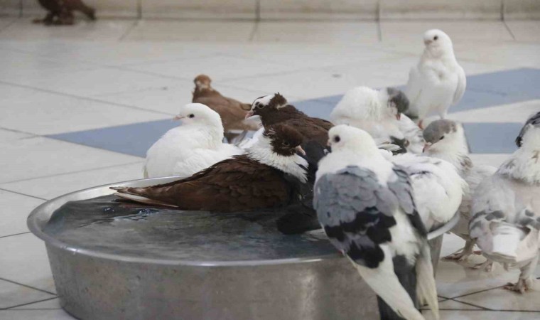 Güvercinleri her gün yıkadıklarını belirten Batmaz, “Her gün günde bir sefer öğlen vakti, sıcaklığın en yüksek seviyeye geldiği vakitte burada yıkıyoruz. Havuz şeklinde su doldurup en güzel şekilde serinletiyoruz. Klimamızda var. Klima ise gündüz 08.00’de açılır akşam 12.00’ye kadar. Hem klima altında, hem de günde bir sefer yıkanmalarından dolayı hayvanlar serinliyorlar” diye konuştu.