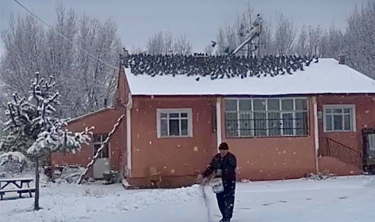 Ağrı’da yaşayan 75 yaşındaki Fevzi Maral, hayvan sevgisiyle çatısına konan yüzlerce güvercini 39 yıldır bıkmadan usanmadan elleriyle besliyor.