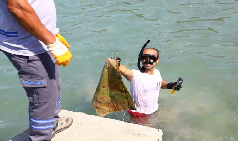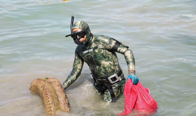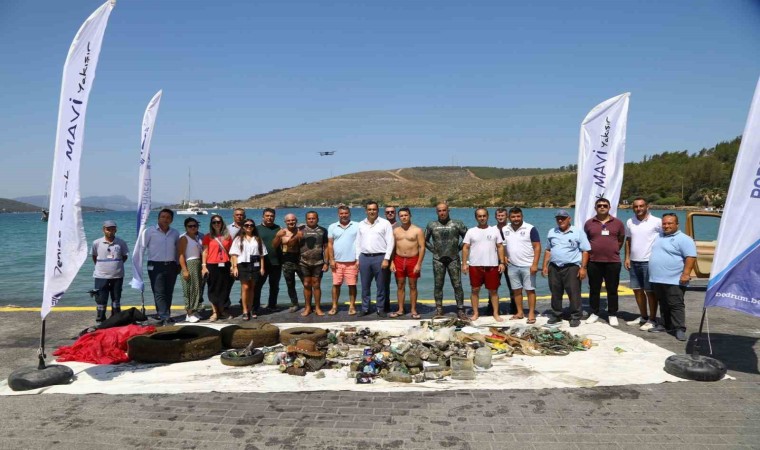Bodrum Belediyesi tarafından düzenlenen Deniz Dibi Temizliği Güvercinlik sahilinde devam etti.