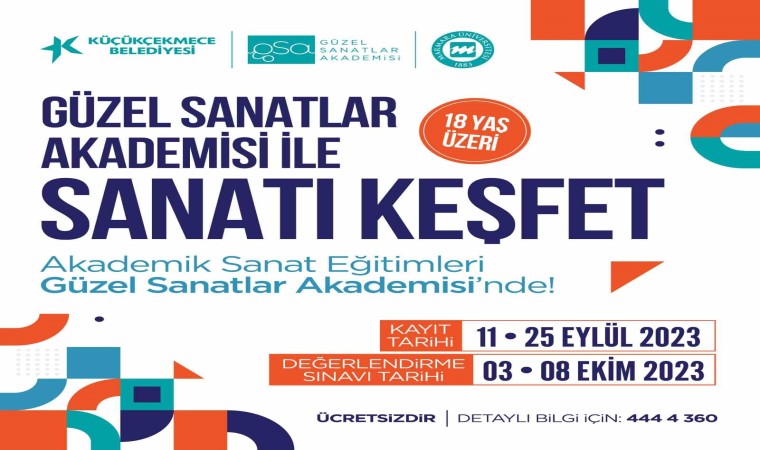 Küçükçekmece Belediyesi Güzel Sanatlar Akademisi, sanatsal yeteneği olan çocuk, genç ve yetişkinler için hazırladığı ücretsiz sanat eğitimleriyle kentin kültür ve sanat hayatına değer katmaya devam ediyor. Toplam 29 ayrı branş için başvurular 25 Eylül’e kadar devam edecek.