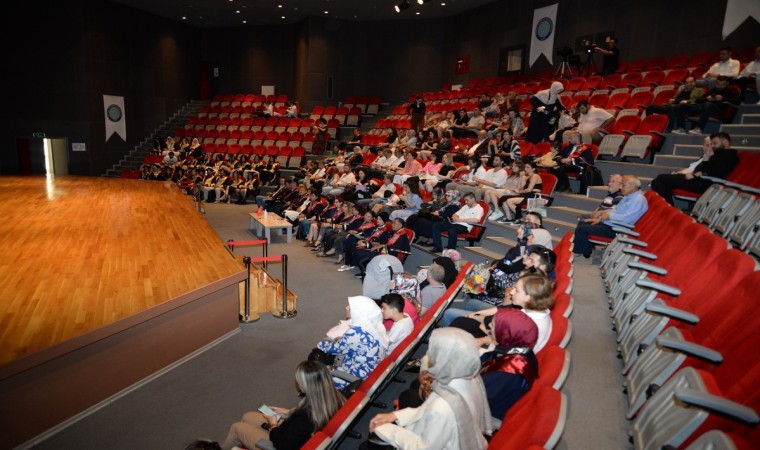 Güzel Sanatlar Fakültesi Dekanı Prof. Dr. Hatice Şahin ise tüm bölümlere özel yetenek sınavlarıyla öğrenci aldıklarını hatırlattı. Bugüne kadar 376 öğrenciyi mezun ettiklerini aktaran Dekan Şahin; “Bu eğitim-öğretim yılındaki kayıtlı öğrenci sayımız ise 208’dir. Fakülte olarak sanatsal, bilimsel ve mesleki bilgi birikimi ile tercih edilen bireyler yetiştirme vizyonuyla çalışıyoruz. Bir yandan da bireyin ve toplumun sanata ilgisini arttırmayı amaçlıyoruz. Desteklerini esirgemeyen üst yöneticilerimize, görevlerini fedakârlıkla yapan akademisyenlerimize ve idari personelimize en içten teşekkürlerimizi sunuyoruz. Ailelerimize emeklerinden ötürü teşekkür ediyoruz. Öğrencilerimizi de mezuniyetlerinden dolayı tebrik ediyor, yeni hayatlarında başarılar diliyoruz” açıklamasında bulundu. Fakülte ve bölümlerde derece yapan öğrencilerin anı belgesi ve teşekkür plaketi ile ödüllendirildiği program, katılan tüm öğrencilerin kep fırlatmasıyla tamamlandı.