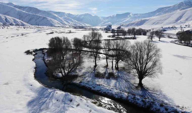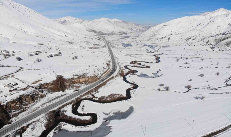 BİTLİS (İHA) – Bitlis’in Tatvan ile Hizan ilçeleri arasında bulunan Güzeldere Menderesleri, kar yağışı ile birlikte kartpostallık görüntüler oluşturdu.