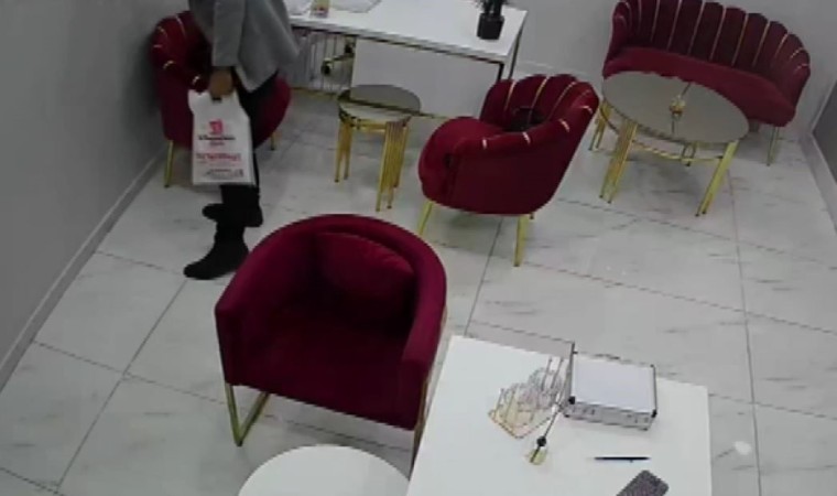 Olay, geçtiğimiz Pazar saat 18.00 sıralarında İstanbul Esenyurt 19 Mayıs Bulvarı üzerinde bir güzellik merkezinde meydana geldi. İddiaya göre, iş yerine müşteri gibi gelen 3 kişi iş yeri sahibi İnci Yelken’e fiyat sordu. Görüşme sırasında şahıslardan kadın ve 16 yaşlarındaki kız Yelken’den epilasyon cihazını göstermesini istedi. Kadınlar başka odaya geçtikleri sırada odada tek kalan adam ise sandalyede duran çantayı açıp içinden bir miktar para alarak cebine koydu. Bir süre sonra kadınlar odaya geri dönerken şahıslar iş yerinden ayrıldı. O sırada Yelken’in eşi yaşanan hırsızlığı güvenlik kamerasında fark ederek haber verirken şahıslar kayıplara karıştı. İş yeri sahibi Yelken, karakola giderek şüpheliden şikayetçi oldu. Zararın yaklaşık 35 bin lira olduğu öğrenilirken yaşanan hırsızlık anları ise iş yerinin güvenlik kamerasıyla saniye saniye görüntülendi.