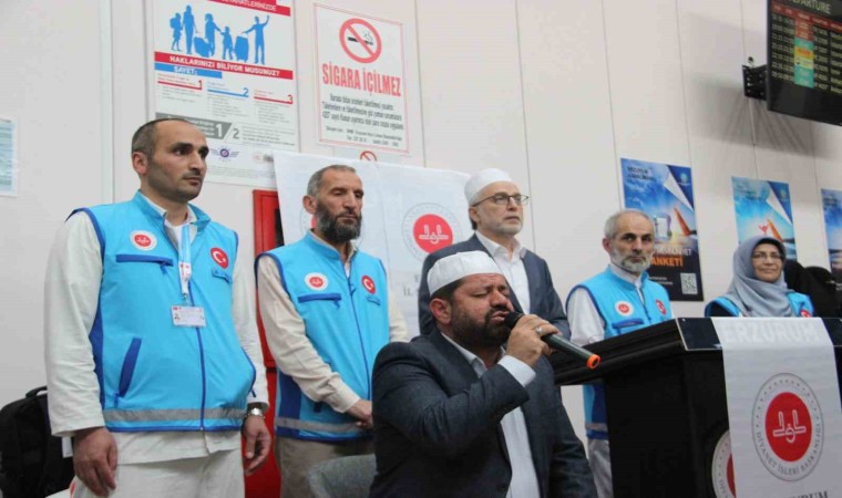 Kur’an-ı Kerim tilavetiyle başlayan programda, uzun zamandır hac farizasını yerine getirmek için bekleyen hacı adayları ile yakınları, uğurlama programında duygulu anlar yaşadı. Program Erzurum Müftüsü Dr. Rüstem Can’ın yaptığı dua sonrası getirilen tekbir, salavat ve telbiyeler ile hacı adayları kutsal topraklara gitmek için uğurlandı.