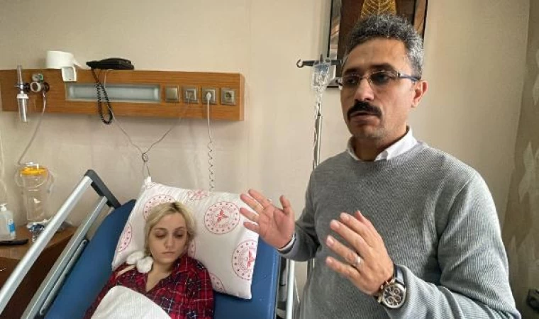 Hastanede tedavisi süren Büşra Teksöğüt’ün yüzünde darp izleri ve bacaklarının sargılı olduğu görüldü. (DHA)