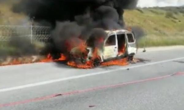 Okan ÇALIŞKAN/ TARSUS (Mersin), (DHA)- MERSİN'de bayram ziyaretine giden Hüseyin Esen'in (34) kullandığı hafif ticari araç, seyir halindeyken alev alıp kullanılamaz hale geldi. Aracı terk eden Esen ile yanındaki arkadaşı, yara almadan kurtuldu.
