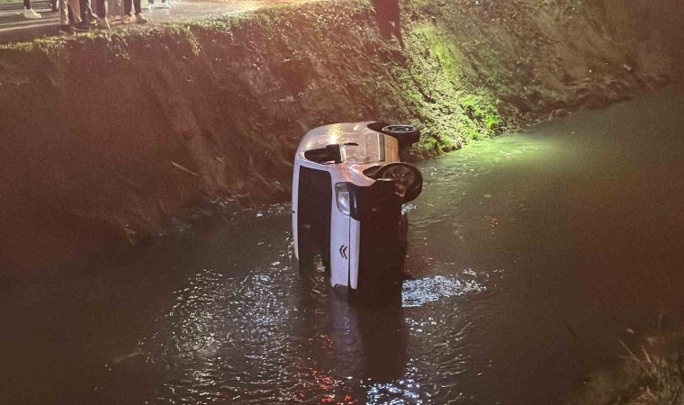 Düzce’de kontrolden çıkan hafif ticari aracın dereye uçtuğu kazada 3 kişi yaralandı.