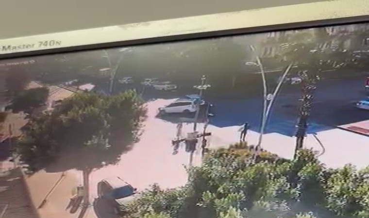 Öte yandan kaza anı bir iş yerinin güvenlik kamerasına yansıdı.